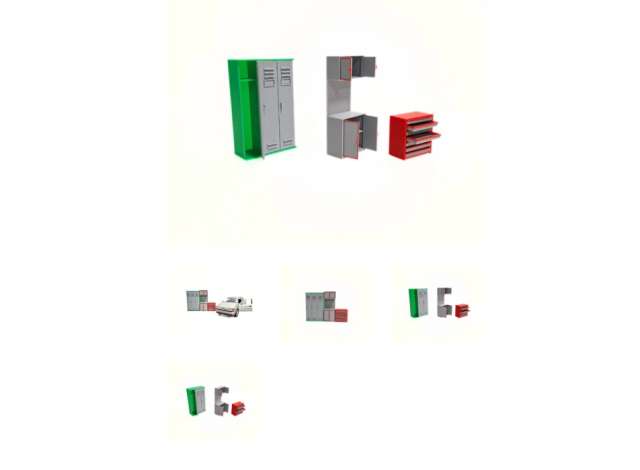 1/24 Toolbox Furniture Accessories Mix, green/red/grey