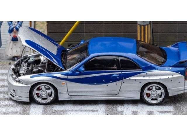 1/64 Nissan GTR-R33 with opening hood, silver/blue