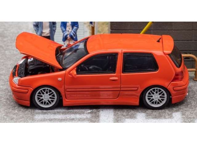 1/64 Volkswagen MK4 with opening hood, orange-red