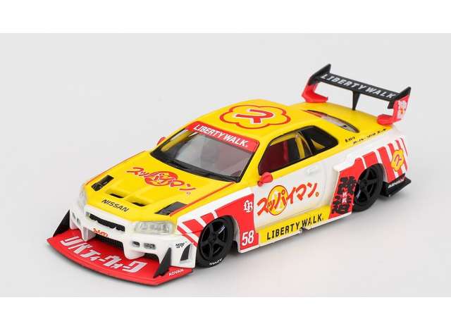 1/64 2025 Nissan GTR (R34) LB-Super Silhouette Skyline Suppaiman Okinawa, yellow/red/white
