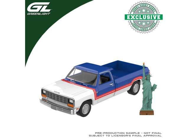 1/64 1981 Dodge Ram America 250 Edition with Big Statue of Liberty Figurine, white/red/blue