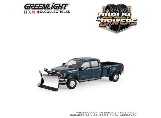 1/64 2022 Ford F-450 Dually with Snow Plow *Dually Drivers Series 17*, antimatter blue