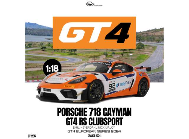 1/18 2024 Porsche 718 Cayman GT4 RS Clubsport #92 Emil Heyerdahl/Nick Maloy GT4 European Series *Resin series*, white/orange