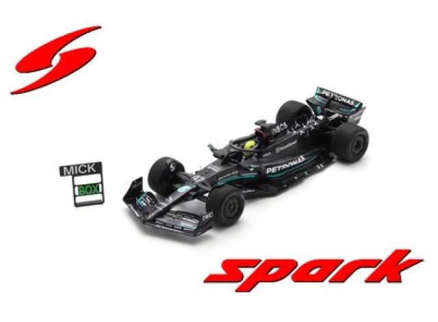 1/18 2023 Mercedes-AMG Petronas F1 W14 E Performance #47 Mick Schumarcher Spanish GP Tyre test 2023, Mercedes-AMG Petronas F1 Team with pit board, black/turquoise